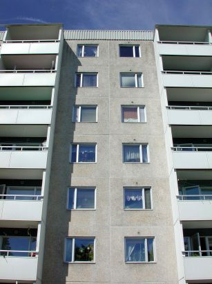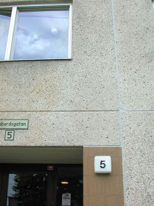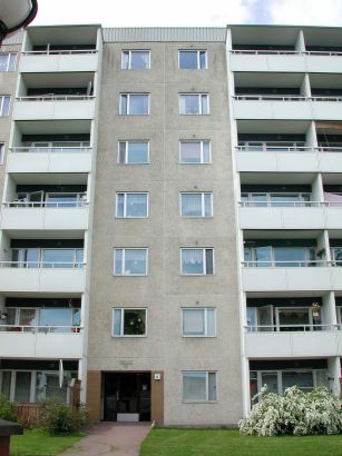 Skivhus i åtta våningar. Enhetligt och repetetivt utformade fasader i ljus gråvit färgställning. Hög, slätputsad grå sockel. Fasadelement i betong med en yta av ljus småsten som blästrats fram efter gjutning. Fönster med sidoställd post, fönster även i gavlarna. Utskjutande balkonger i den östra fasaden mot vattnet. Balkongerna har väggar av vitmålade betongelement, vita balkongfronter och aluminiumräcke. Balkongraderna är symmetriskt ordnade i fasaden. Den västra fasaden har vertikala partier, symmetriskt ordnat, med en något brunare ton, åstadkommen genom en mörkare, mindre stensort i betongelementens yta. Husets entréer är genomgående i huset och leder mot öster ut på gården och mot väster direkt till det stora, överbyggda garaget som är gemensamt för husen i kvarteret Seglet. Entréerna mot väster har glasade träportar och väggar klädda med glaserat kakel i en kulör för varje hus, i detta hus gulfärgat. Entréerna är genomsiktliga från långsida till långsida. Plant tak med rak, vit plåtinklädd takkant ut mot fasaderna.